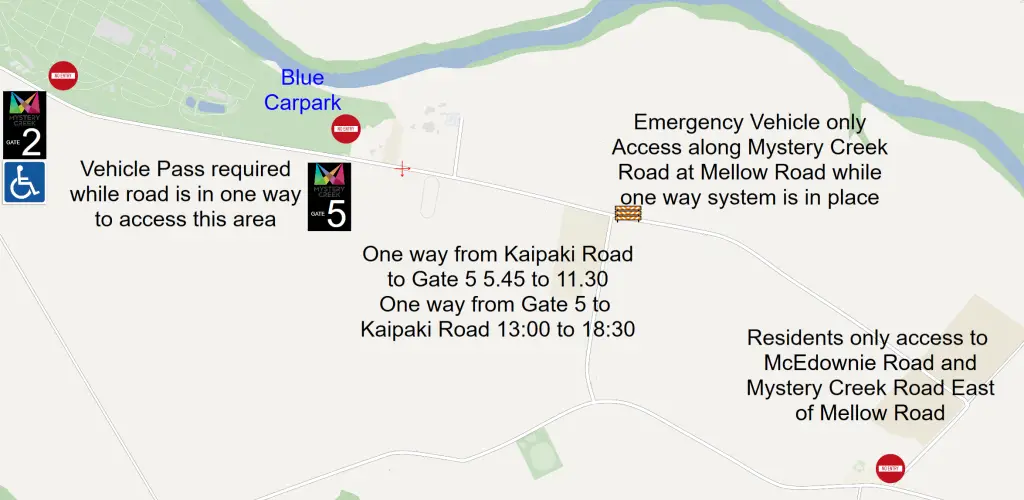 As part of the planning for this years event there will be some minor changes to the traffic management plan which includes a morning no through road system on SH21 (Airport Road.) The reason for this is that due to the narrows bridge being of constrained width we are getting large queues forming back from here back beyond Tamahere Interchange in all directions. Part of the success of the Hamilton Expressway opening is that we have move vehicles arriving faster at this point than previous years events. This no through road will create based on the travel information we gathered a 10 minute longer journey for someone travelling from SH3 heading south on SH1 from Tamahere Interchange at peak morning flow. We are only doing this in the morning for up to 3 hours and you will be able to see here live when it is closed or open to through traffic.